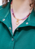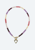 Pink and Purple Rondelle Beaded Necklace with Heart Charm
