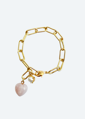 Paperclip Chain Bracelet with Pink Heart Charm and Pearl Charm